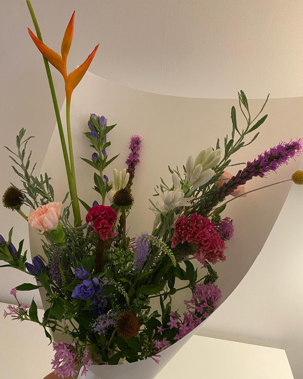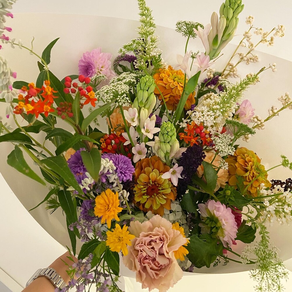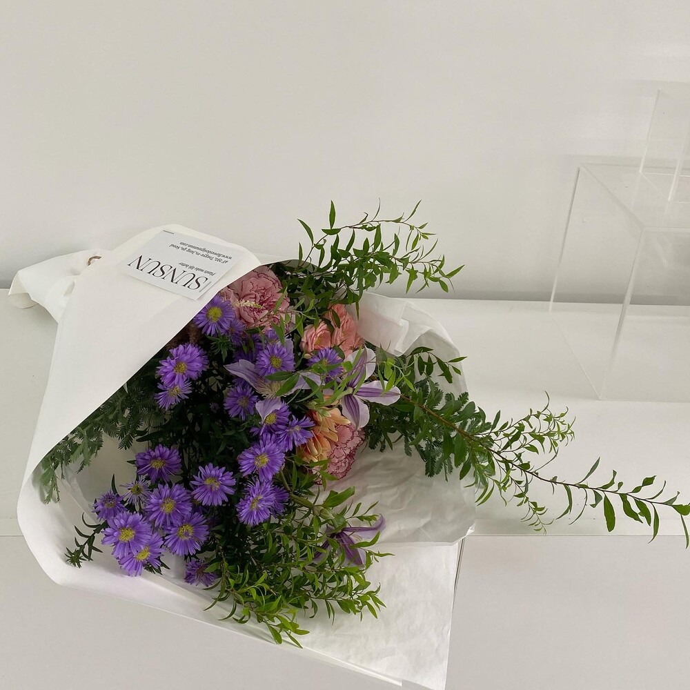당일 가장 좋은 품질의 꽃과 나무 그리고 잎소재를 배열하여 만든 꽃다발입니다.